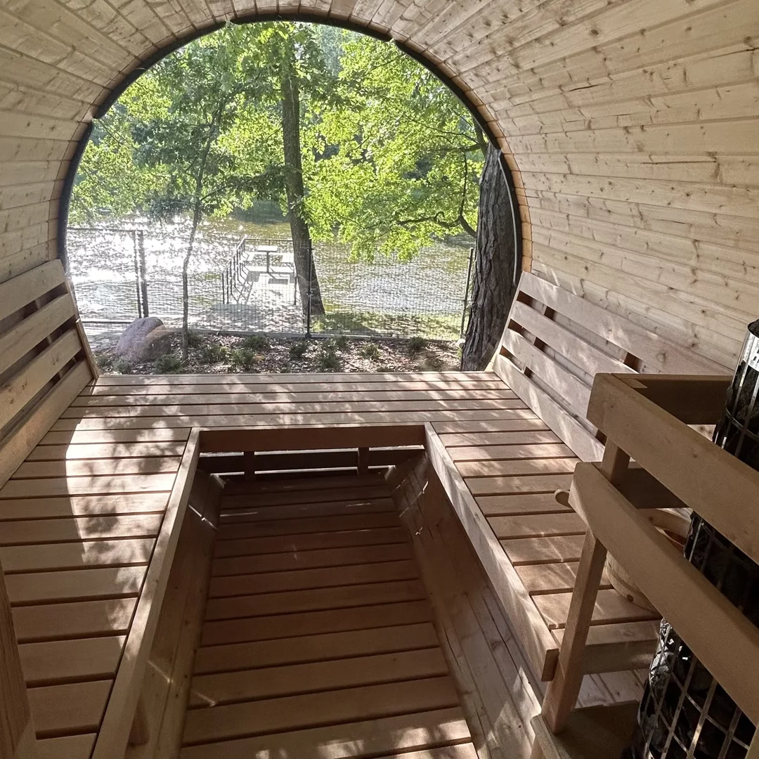 Wybierając nocleg w naszych domkach, macie możliwość skorzystania z dodatkowej opcji wygrzania się w prywatnej saunie. Ten luksus, dostępny za dopłatą, sprawi, że pobyt u nas stanie się kompletnym doświadczeniem regenerującym ciało i głowę – i to w samym sercu lasu.