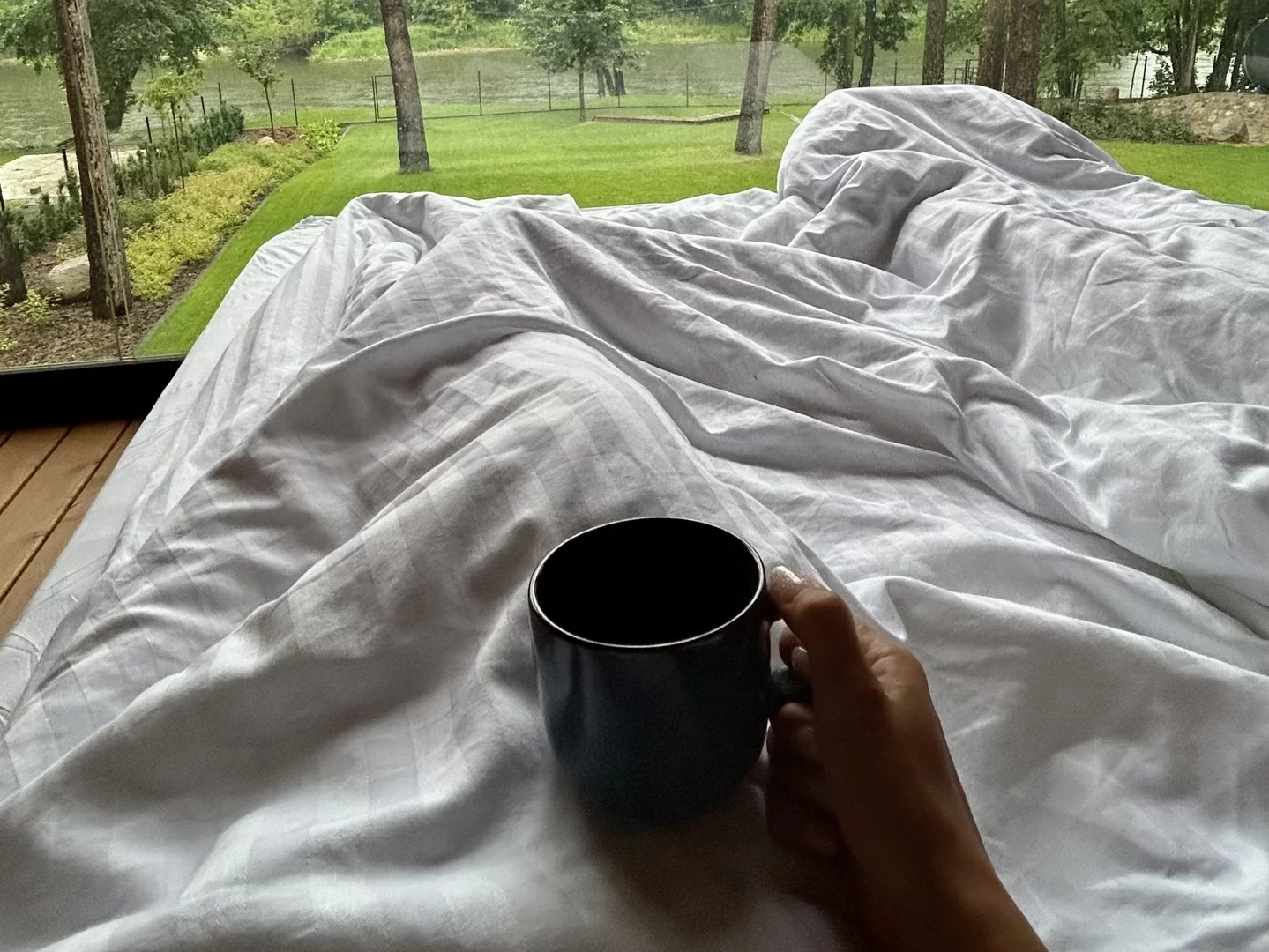 Chcąc dać Wam coś naprawdę wyjątkowego, wpadliśmy również na szalony pomysł – w wybranych domkach łóżka mogą wyjechać na taras. Z naszych podróży wiemy, że nie ma nic piękniejszego niż zasnąć z widokiem na gwieździste niebo czy obudzić się dosłownie w sercu lasu. U nas możecie tego doświadczyć – w dodatku w wygodnym i eleganckim stylu!